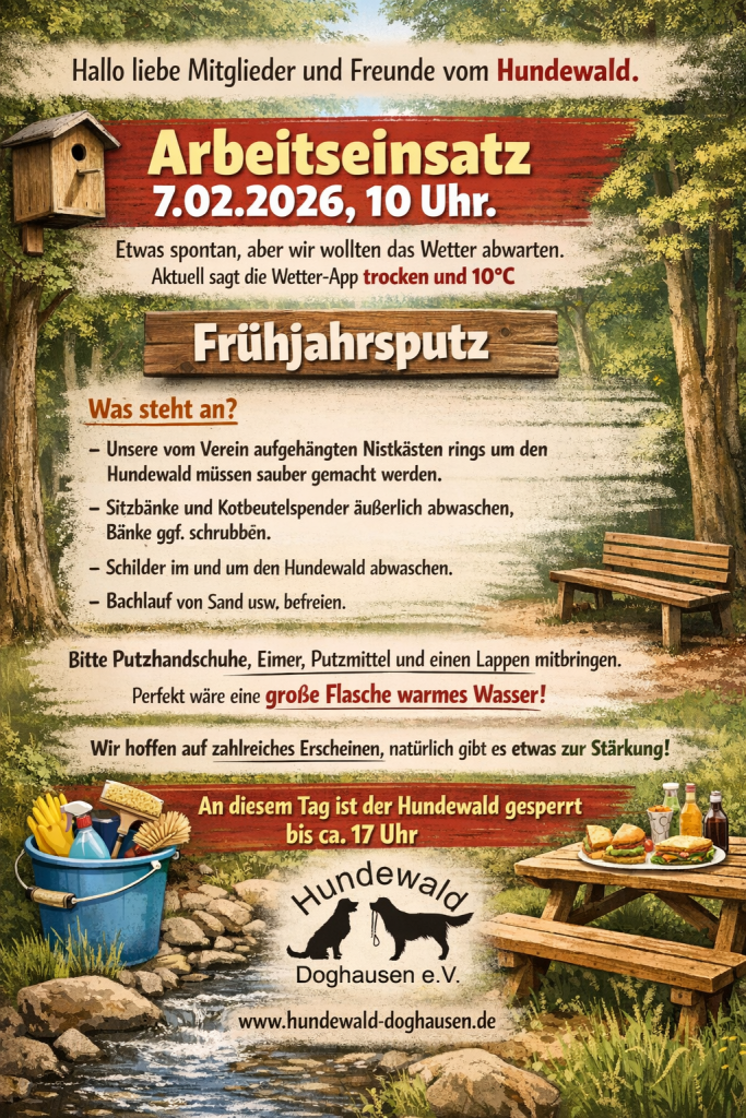 am Samstag, den 07.02.2026 ab 10 Uhr, möchten wir gemeinsam unseren Hundewald fit für das Frühjahr machen.